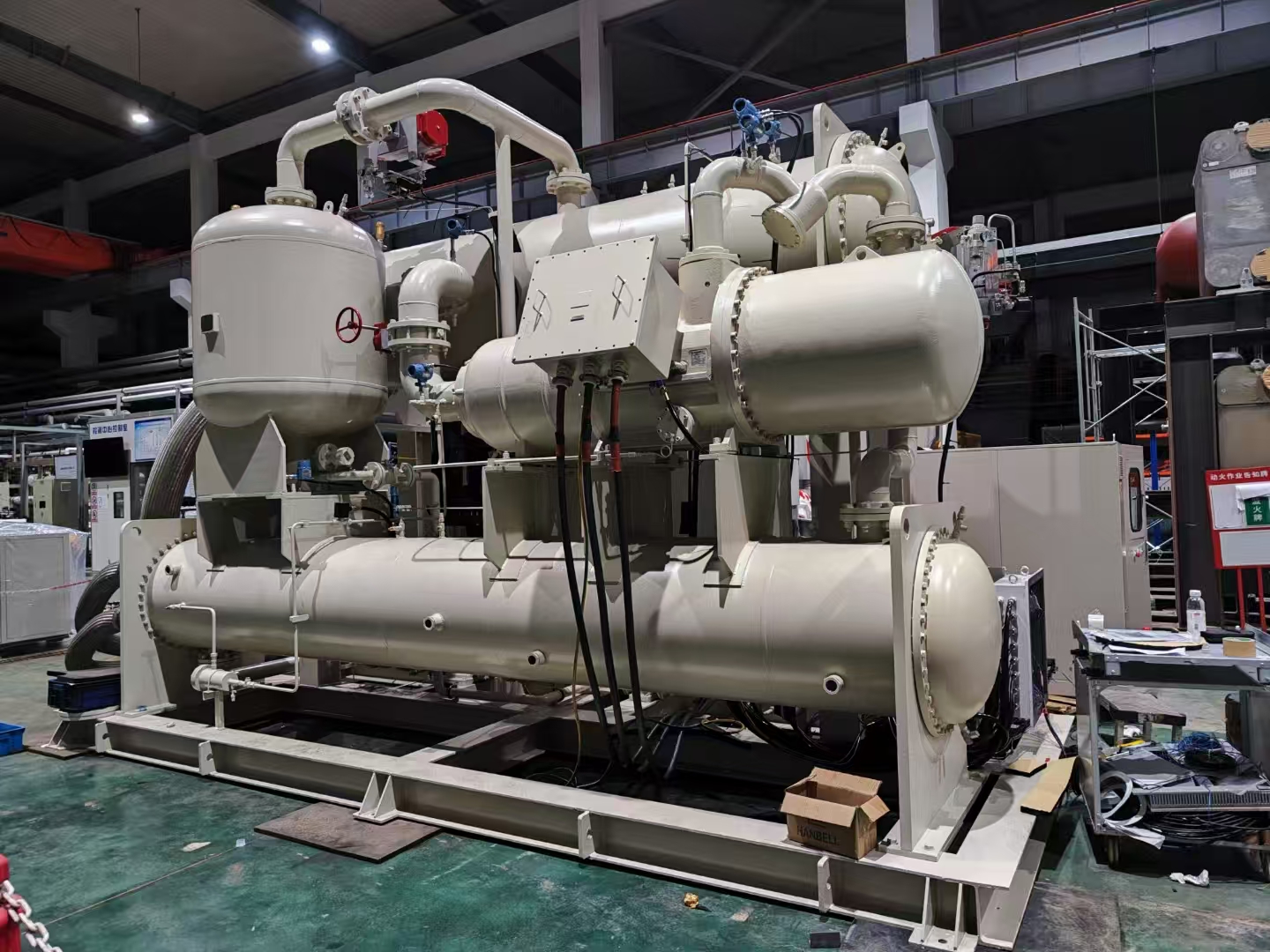 Utiliza el compresor semihermético de doble tornillo desarrollado independientemente por Hanbell (certificaciones internacionales: ISO-9001, UL, CE, Swiss Lloyd's Register, etc.), con el motor y el compresor integrados en una sola unidad, evitando fugas de aceite; Cuenta con una alta eficiencia de transmisión y un bajo ruido de funcionamiento. Combinado con un sistema de retorno de aceite de bomba eyectora independiente, garantiza un retorno de aceite estable incluso en condiciones de carga completa, lo que extiende significativamente la vida útil de la unidad.